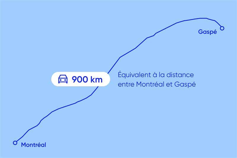 900 km de tuyauterie géothermique, soit l’équivalent de la distance entre Montréal et Gaspé.