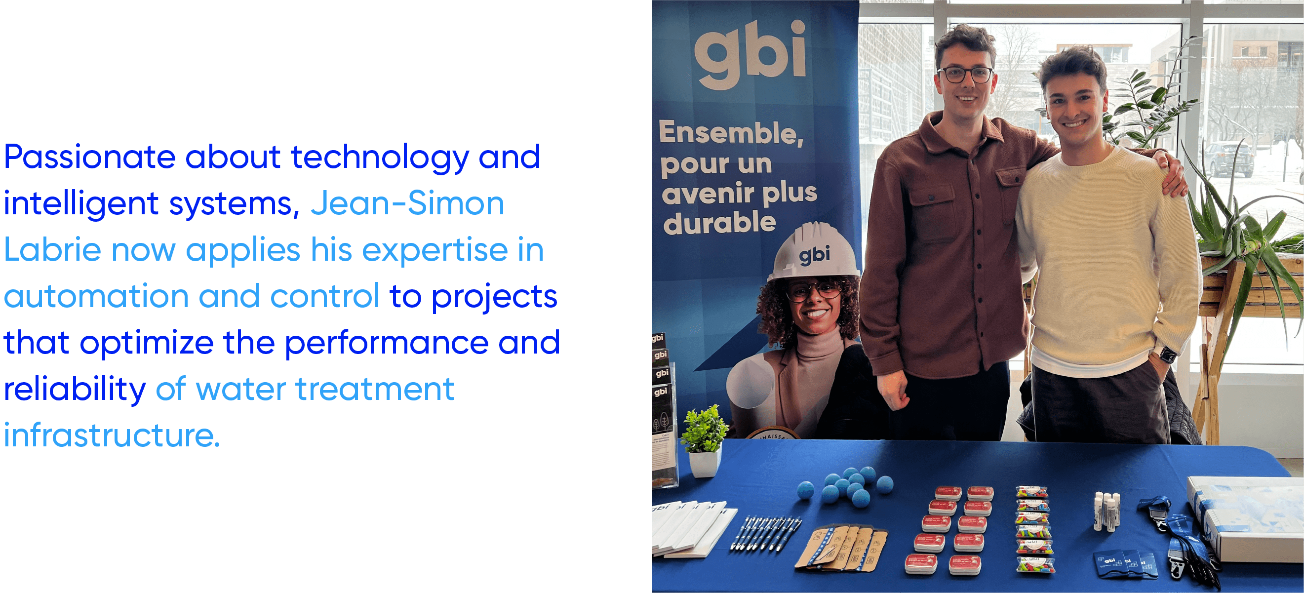A graduate of Laval University in electrical engineering with a power concentration, Jean-Simon, did not initially study automation during his university program. It was by joining gbi as an EIT in the Water department