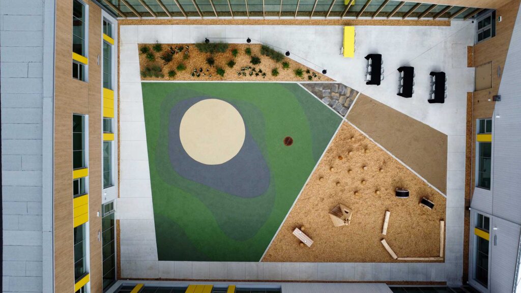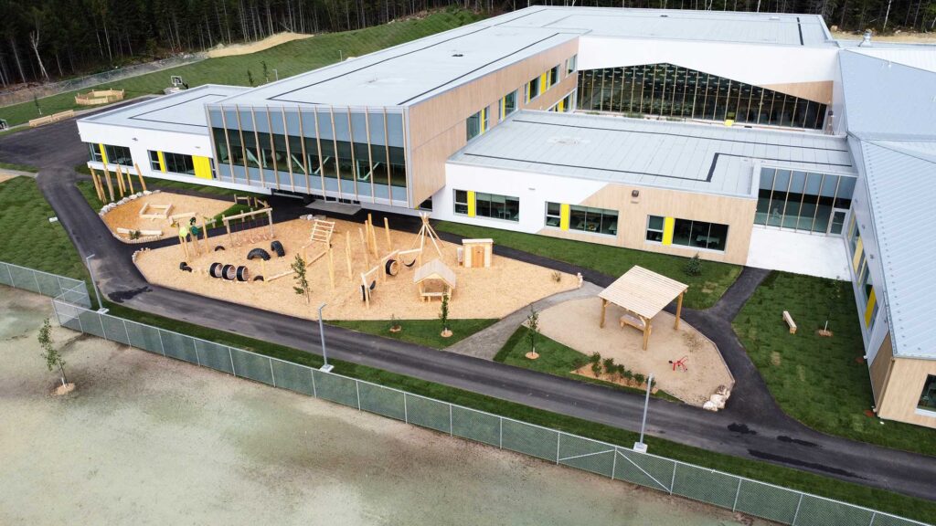 Face à l’obsolescence de l’ancienne école, qui ne répondait plus aux besoins en termes de capacité et de services, les attentes étaient claires : concevoir un établissement moderne et inclusif, capable d’accueillir 615 élèves, tout en favorisant un sentiment de fierté et d’attachement à la scolarité. La nouvelle école ne devait pas seulement répondre aux enjeux d’éducation, mais également contribuer au sentiment d’appartenance et à l’identité culturelle de la communauté.