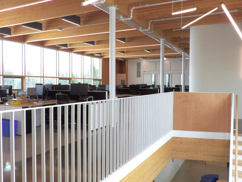 Il est important de noter que les essences de bois utilisées dans le cadre du projet sont l’épinette et le pin, bois provenant du Québec à 90 %. Ces achats locaux réduisent la distance de livraison entre la coupe, le fournisseur et le chantier.