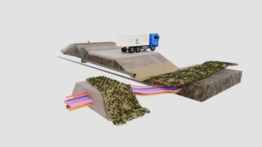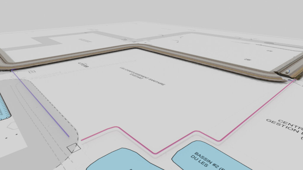 Des nouvelles infrastructures indépendantes des cellules existantes ont a été conçues, ce qui est une démarche peu commune pour ce type de projet. Cependant, sa distinction réside dans la conception d’une infrastructure de conduites souterraines complexes, initialement prévue pour contourner l’ancien site d’enfouissement.